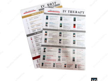 นิยมพิมพ์ 4 สี 2 ด้าน เรียงหน้าตามลำดับเมนู แล้วเคลือบ PVC เงา / ด้าน และเข้าเล่มด้วยขดลวด หรือสันเกลียวพลาสติก การทำเมนูแบบเข้าเล่มสันห่วงนี้ ใช้งานง่าย การเคลือบ PVC 2 ด้านมีข้อดีหลายอย่าง คุณสมบัติเด่นคือทำให้ชิ้นงานทนทาน ทั้งยังราคาไม่แพงเมื่อเทียบกับความทนทานที่ได้รับ ขนาดเมนูสามารถผลิตได้ตามขนาดที่ลูกค้าต้องการ เหมาะสำหรับเมนูร้านอาหารขนาดเล็ก เมนูร้านกาแฟ เมนูเครื่องดื่ม และเมนูไอศครีม