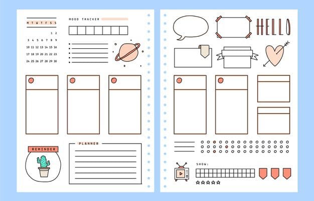 ลิงค์ดาวน์โหลด: https://www.freepik.com/free-vector/cute-bullet-journal-planner_10804054.htm