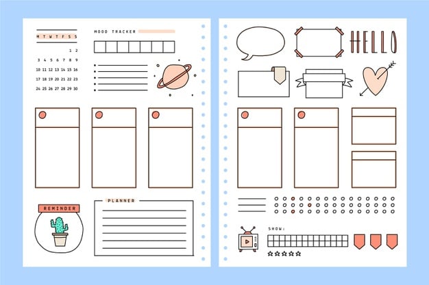 ลิงค์ดาวน์โหลด: https://www.freepik.com/free-vector/bullet-journal-planner-template-set_10515581.htm