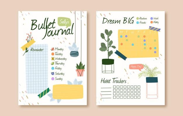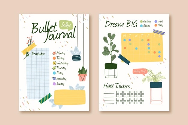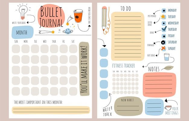 ลิงค์ดาวน์โหลด: https://www.freepik.com/free-vector/creative-bullet-journal-planner-template_10831634.htm