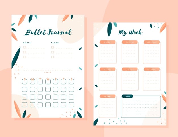 ลิงค์ดาวน์โหลด: https://www.freepik.com/free-vector/bullet-journal-planner-template_10515579.htm