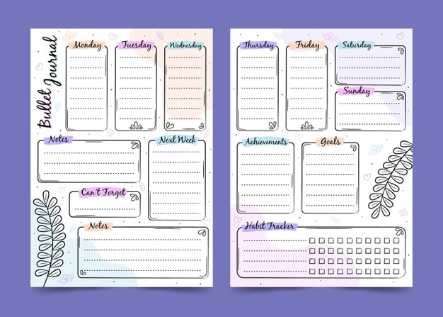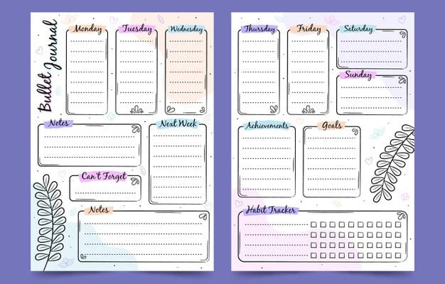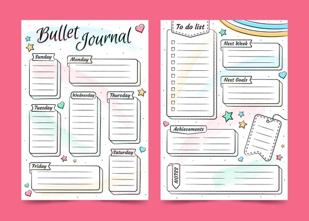 ลิงค์ดาวน์โหลด: https://www.freepik.com/free-vector/pack-creative-bullet-journal-planner_10751893.htm